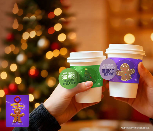在2025年11月23日至12月30日海洋光谱号从香港母港出发的航次预订本产品,并于登船后在咖语茶道Leaf & Bean或北极星酒吧North Star Bar使用本产品享用热巧克力时,可特别享有圣诞限定杯套并就每杯热巧克力获赠 “姜饼人钥匙扣”1 个(尺寸:6.7 × 7 cm;材质:亚克力 + 金属配件)。