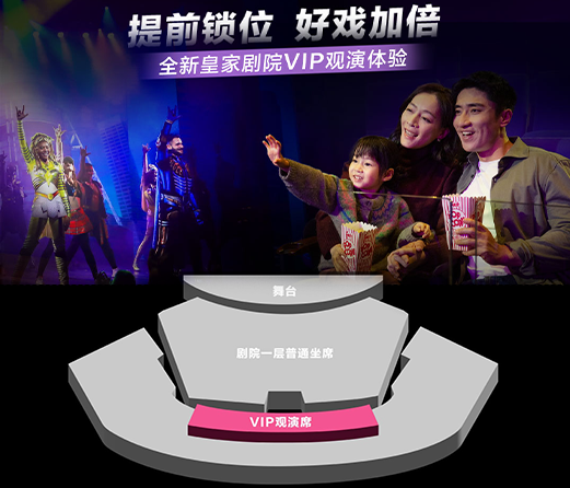 置身皇家大剧院一楼的中央观演区,仅设45席,坐拥直面舞台的黄金视角。贵宾须于开演前 15 分钟入场。将由专人欢迎并领位入场,从容落座专属于您的观演席位。并为您备好清凉气泡饮品与酥香爆米花,伴您愉悦观演,享受视听与味觉交织的沉浸时光
