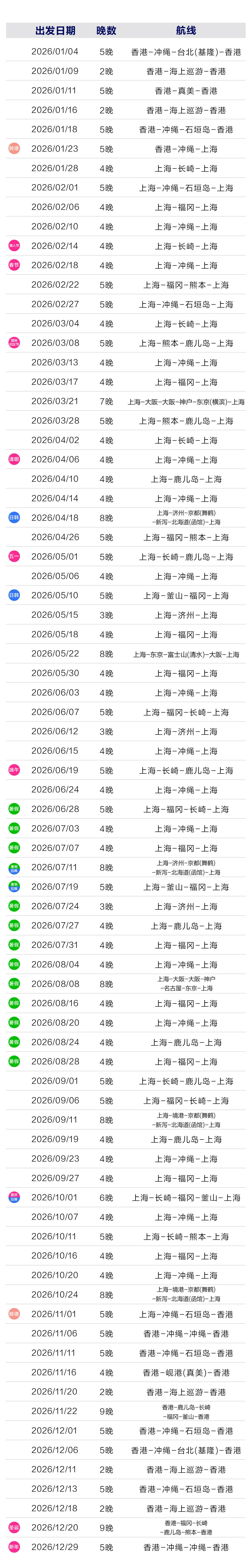 - 海外出发航线